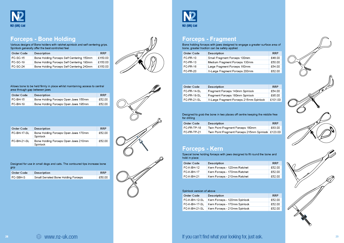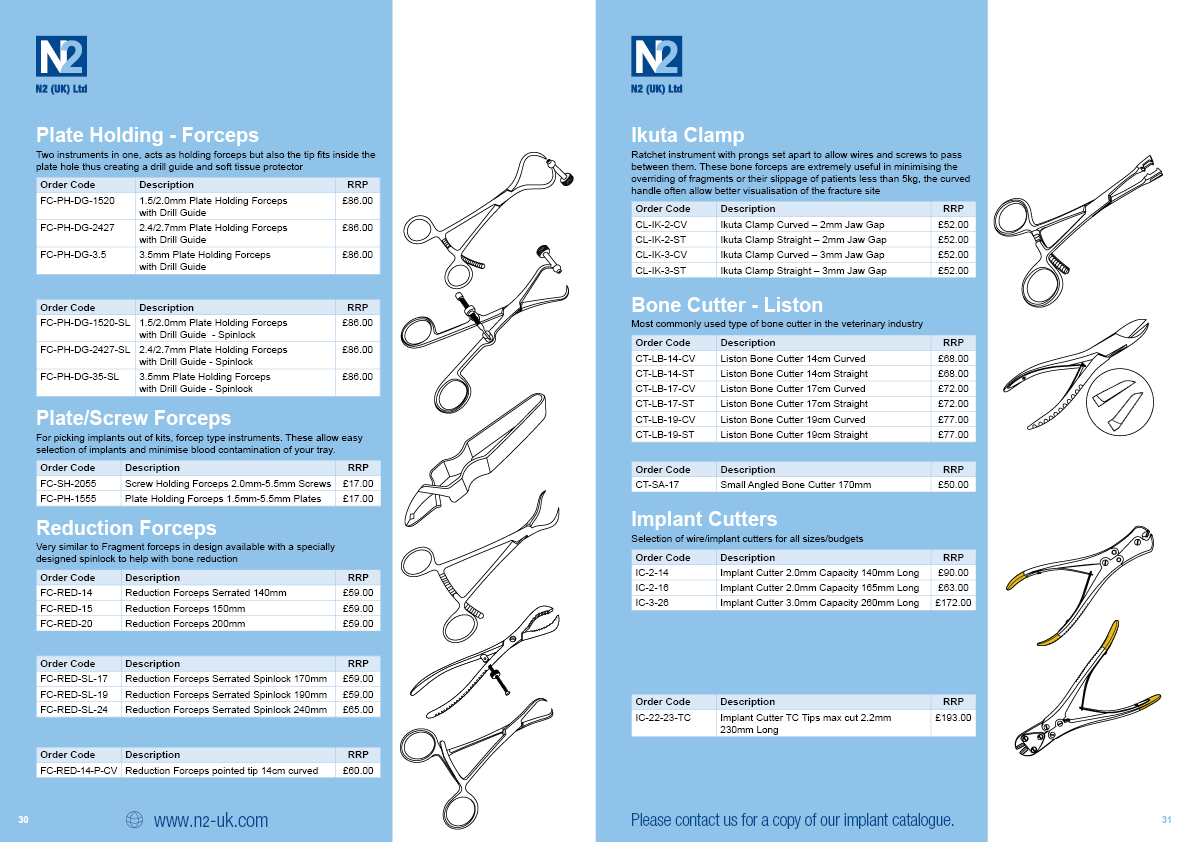 N2 a manufacturer and supplier of veterinary products asked us to design and illustrate two product catalogues for their instruments range and implant range.